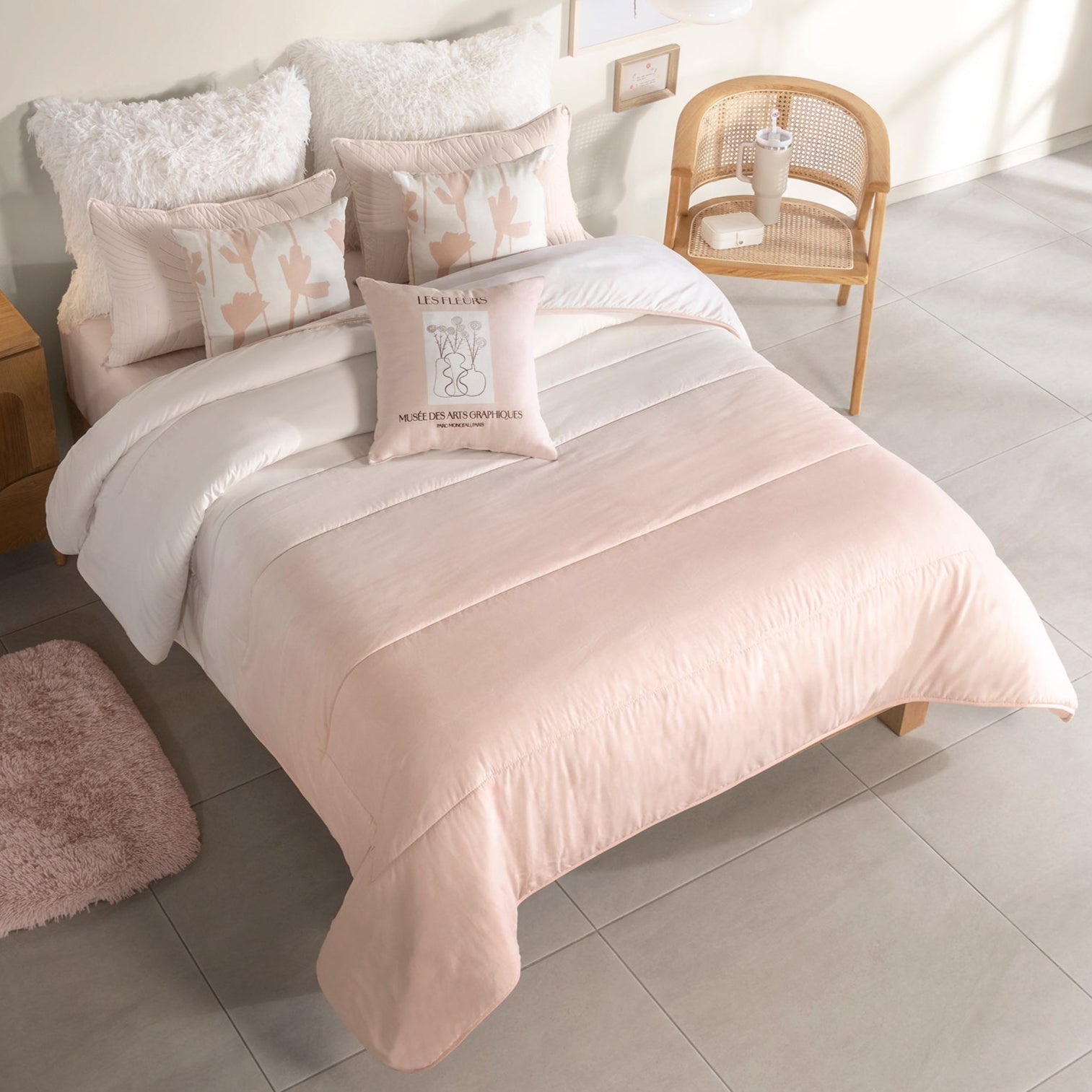 Edredón Bouquet moderno aporta un toque de sofisticación y serenidad a tu dormitorio. Su suave tono rosa, con un matiz elegante y contemporáneo, se adapta perfectamente a estilos modernos y minimalistas.
