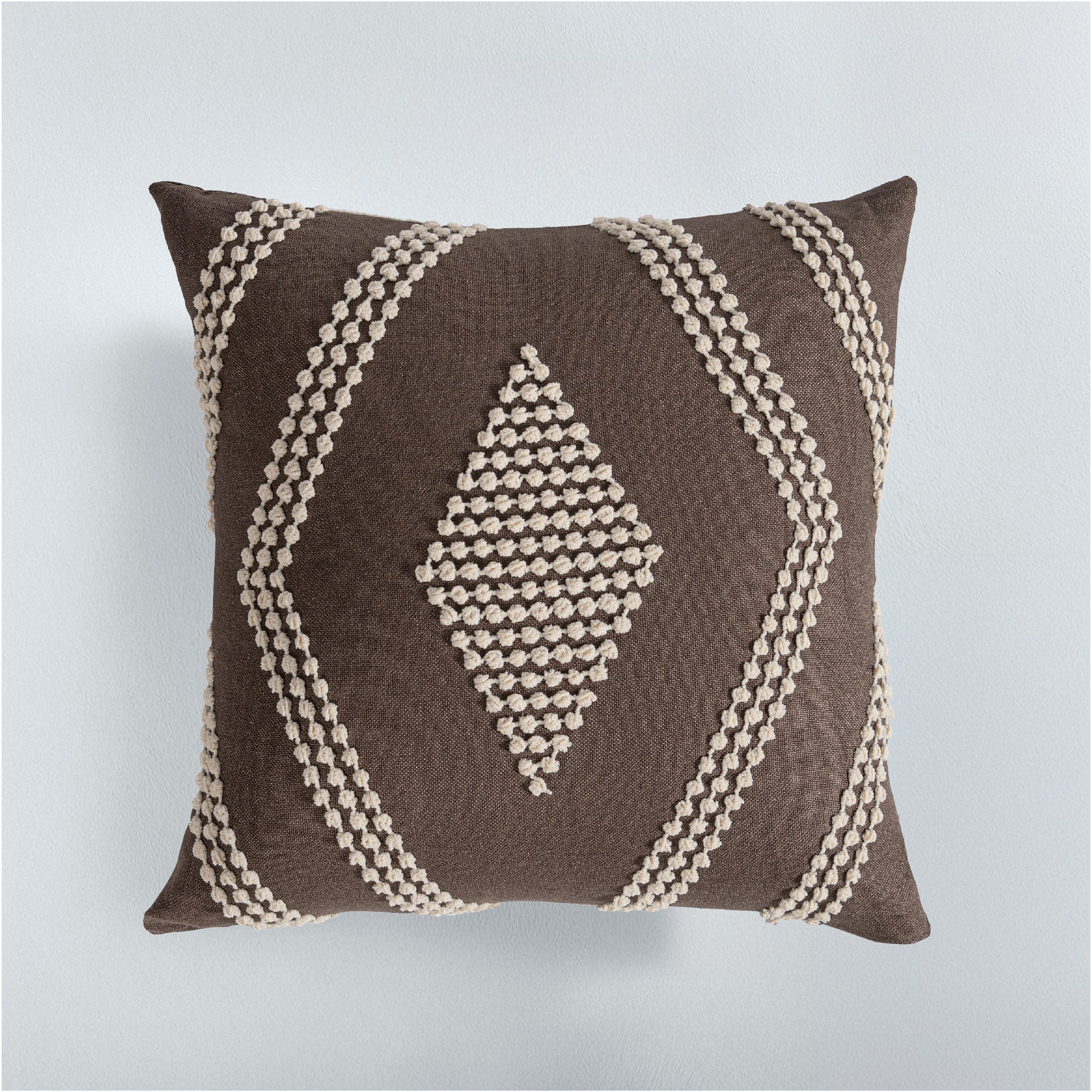 Funda de cojín Cobá, bordado en chenille y con su color café es sencillo y elegante, perfecto para añadir un toque cálido y acogedor a cualquier espacio. Ideal para combinar con diferentes estilos.
