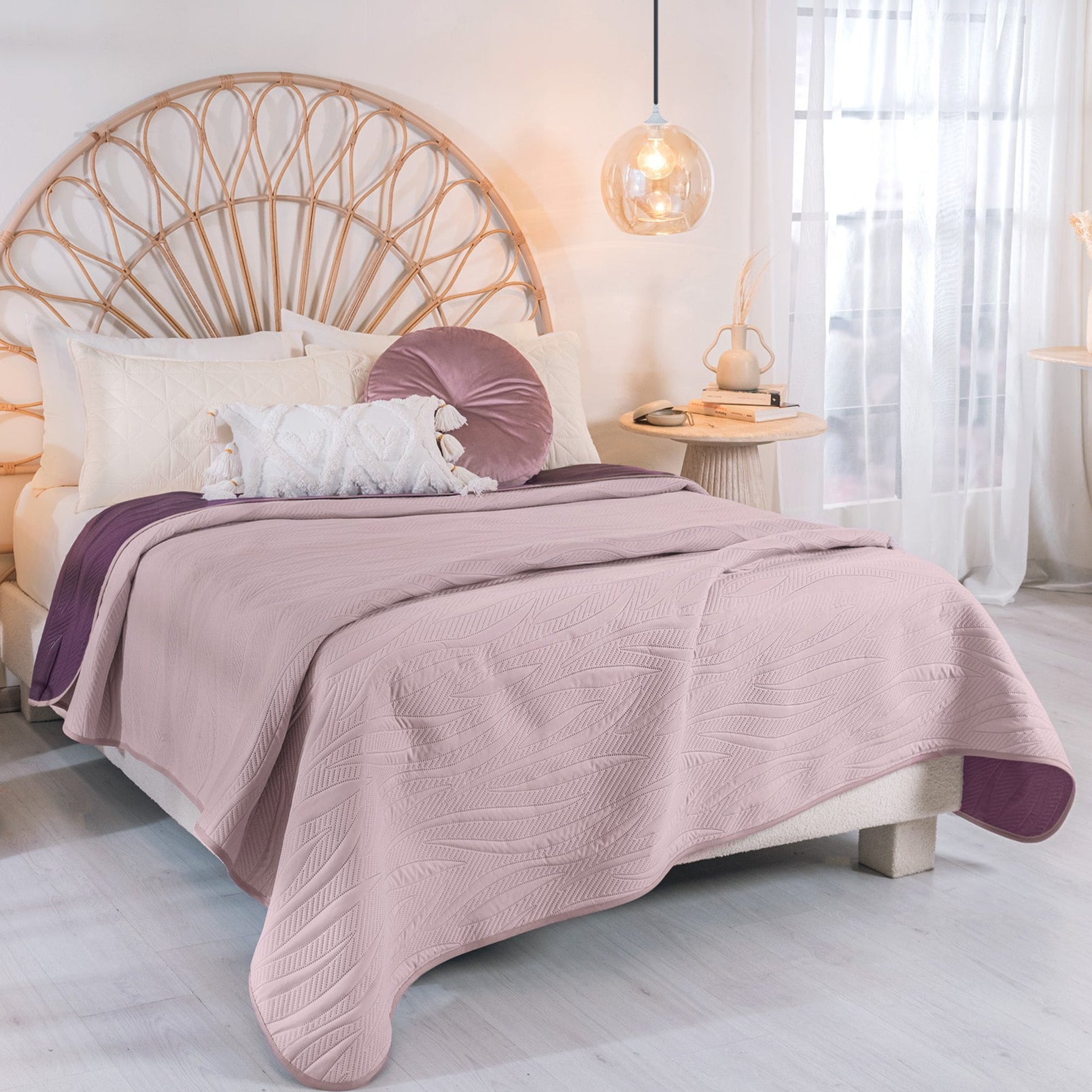 Crea un ambiente moderno y lleno de personalidad con el Edredón Novo Berry. Su color, asociado a la creatividad y la serenidad, es ideal para dar profundidad y un toque sofisticado a tu habitación. Edredón ultra delgado, color resistente, fácil de lavar y guardar.