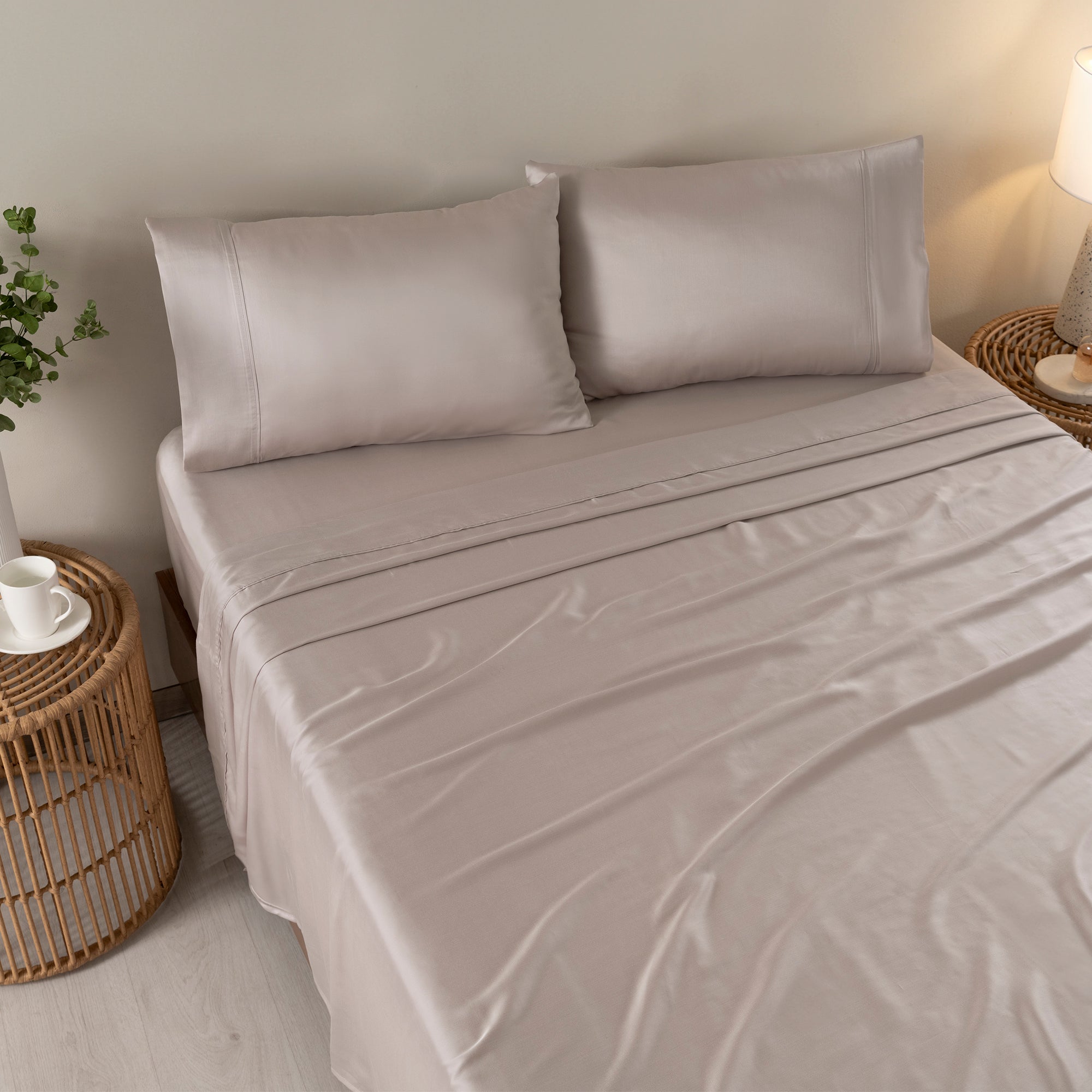 Cúbrete de suavidad con las Sábanas Tencel Gray. Su tono gris las hacen versátiles y muy combinables. Fibras Tencel de origen natural que garantizan confort para pieles sensibles.