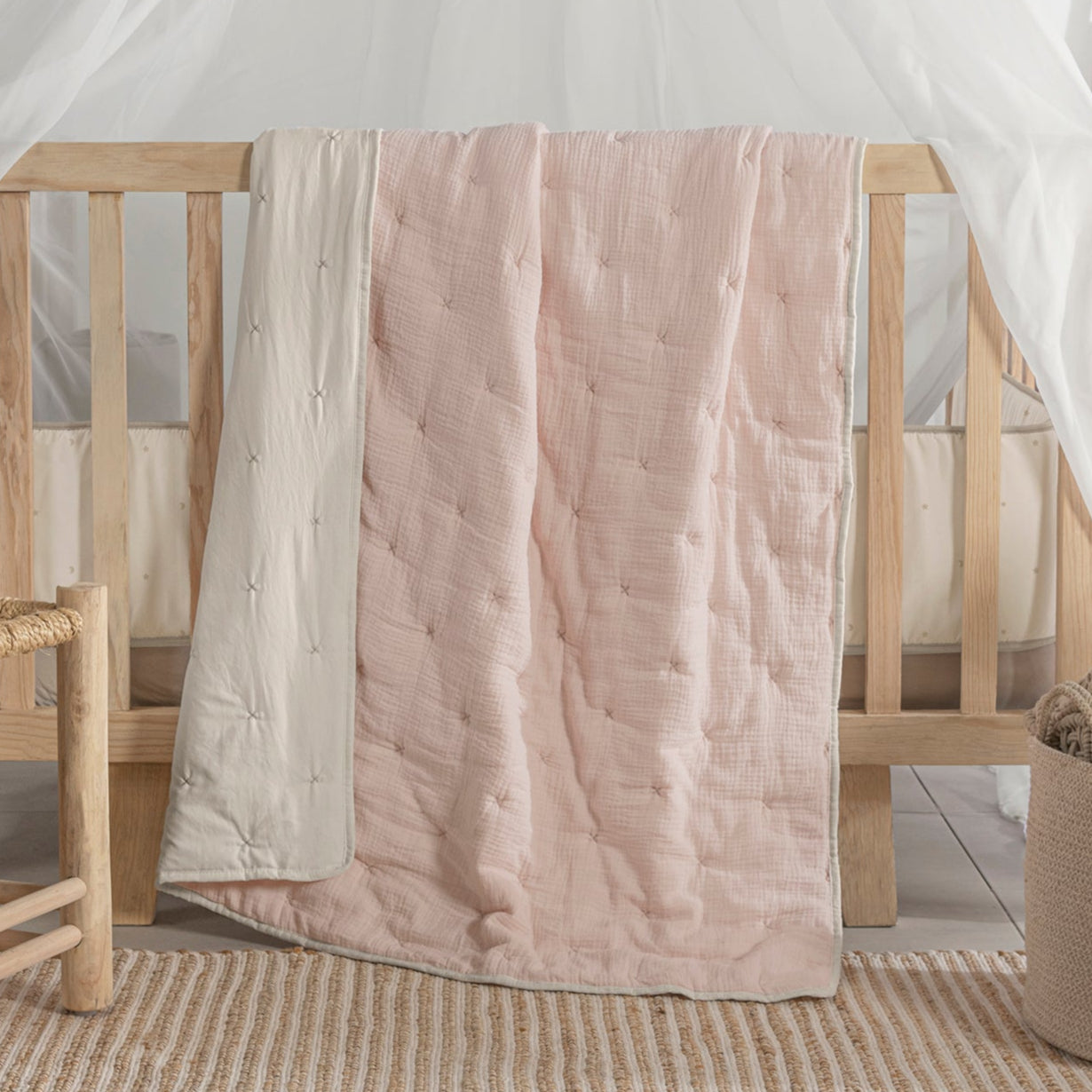 89668 EDREDON BABY VOGA MUSELINA SWEET PINK CUNA/CCC