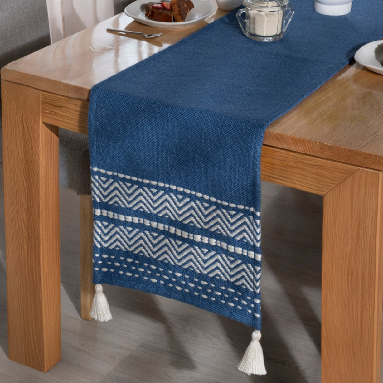 Camino de mesa Mumbai Indigo agrega un toque de distinción y frescura a tu comedor. Su color vibrante y diseño elegante lo convierten en el accesorio perfecto para darle un aire moderno y confortable a cualquier mesa.